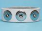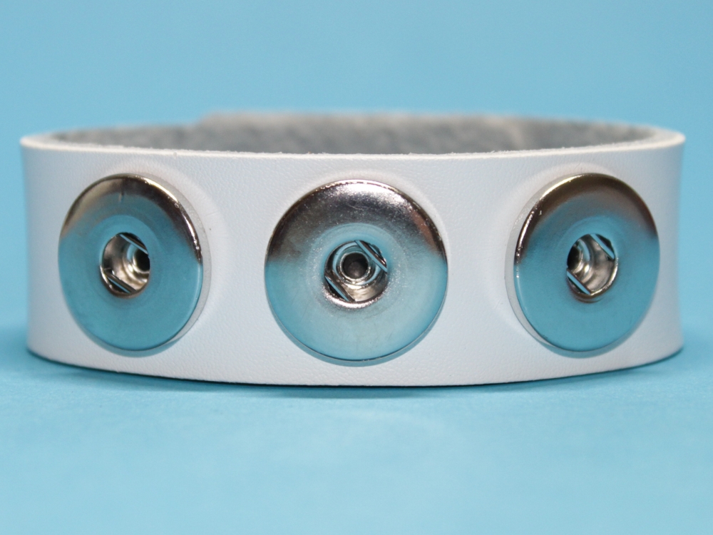Dieses Armband aus glattem Leder in weiss ist für drei Druckknöpfe konzipiert. Es ist ein neutraler Begleiter für farbstarke Klicks.