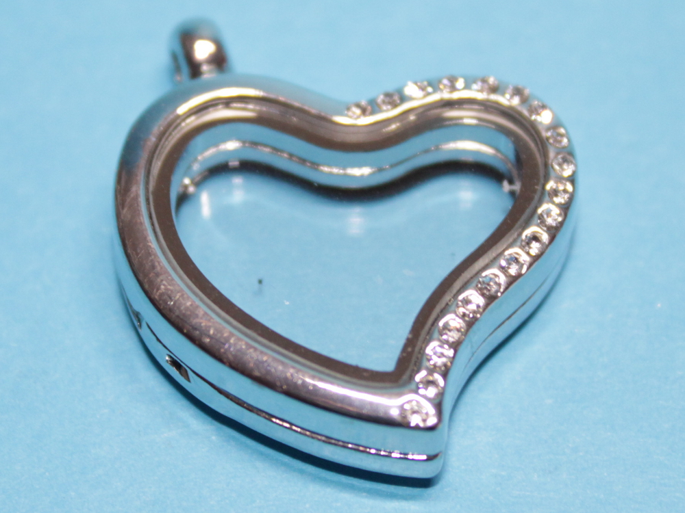 Ein Herz mit Strass Floating Charm Medaillon Anhänger mit Magnetverschluss zum Befüllen.