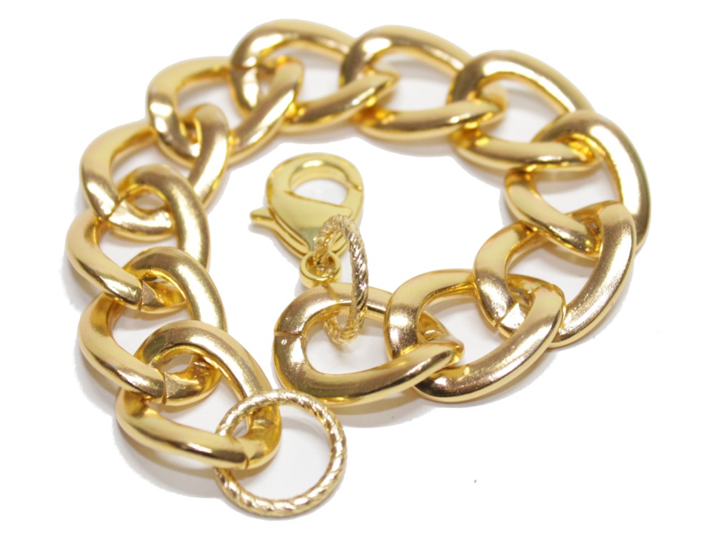 Ein Armband, ca. 21 cm, mit Karabiner, goldfarben. Gliedergröße ca 22x17mm.