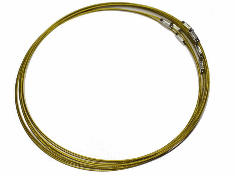 Die Drahtstärke beträgt 1 mm, das bewegliche Schraubröhrchen des Verschlusses hat einen Durchmesser von 4 mm, der Teil auf den es aufgeschraubt wird, misst ca. 2,8 mm im Durchmssser.