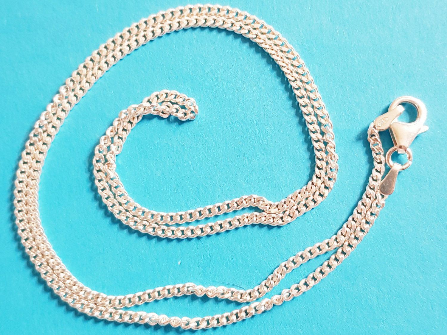 Eine Ankerkette mit Karabiner ca. 50 cm, silberfarben. Gliedergröße ca. 2 x 2 mm.