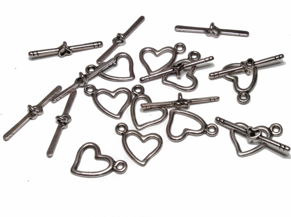 Knebel-Verschluss Herz, ca. 14 x 18 mm, 10 Stück