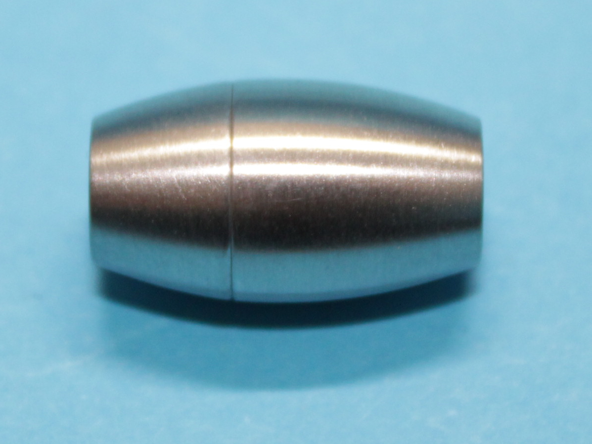 Ein Magnetverschluss für Bänder, Olive, matt, Stahl, 10,5 x 18 mm, Innendurchmesser ca. 6 mm.